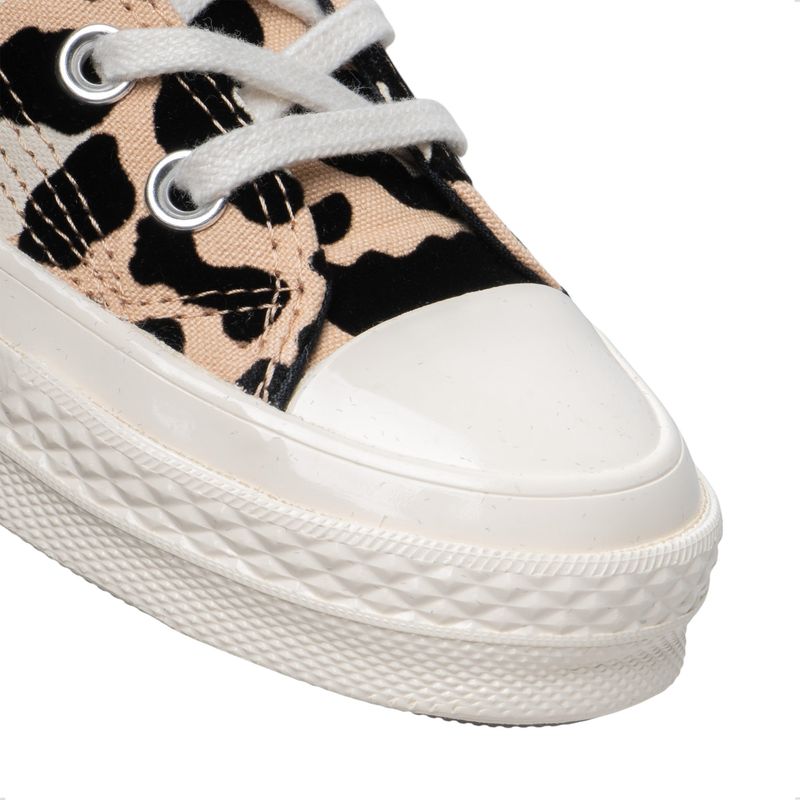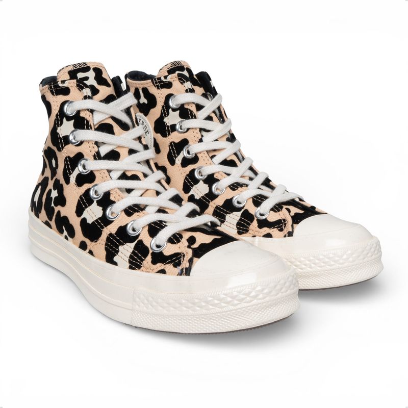 Las Zapatillas Converse Chuck 70 Hi Animal Print elevan el diseño clásico de Converse con una impronta premium y un estampado animal print que marca tendencia. Este modelo de caña alta combina el estilo vintage inspirado en los años 70 con materiales de mayor calidad, costuras reforzadas y una estructura más robusta. Su capellada de lona gruesa aporta durabilidad y personalidad, mientras que la plantilla OrthoLite® brinda una amortiguación superior para un confort prolongado. Ideales para quienes buscan un look urbano distintivo, moderno y con identidad.